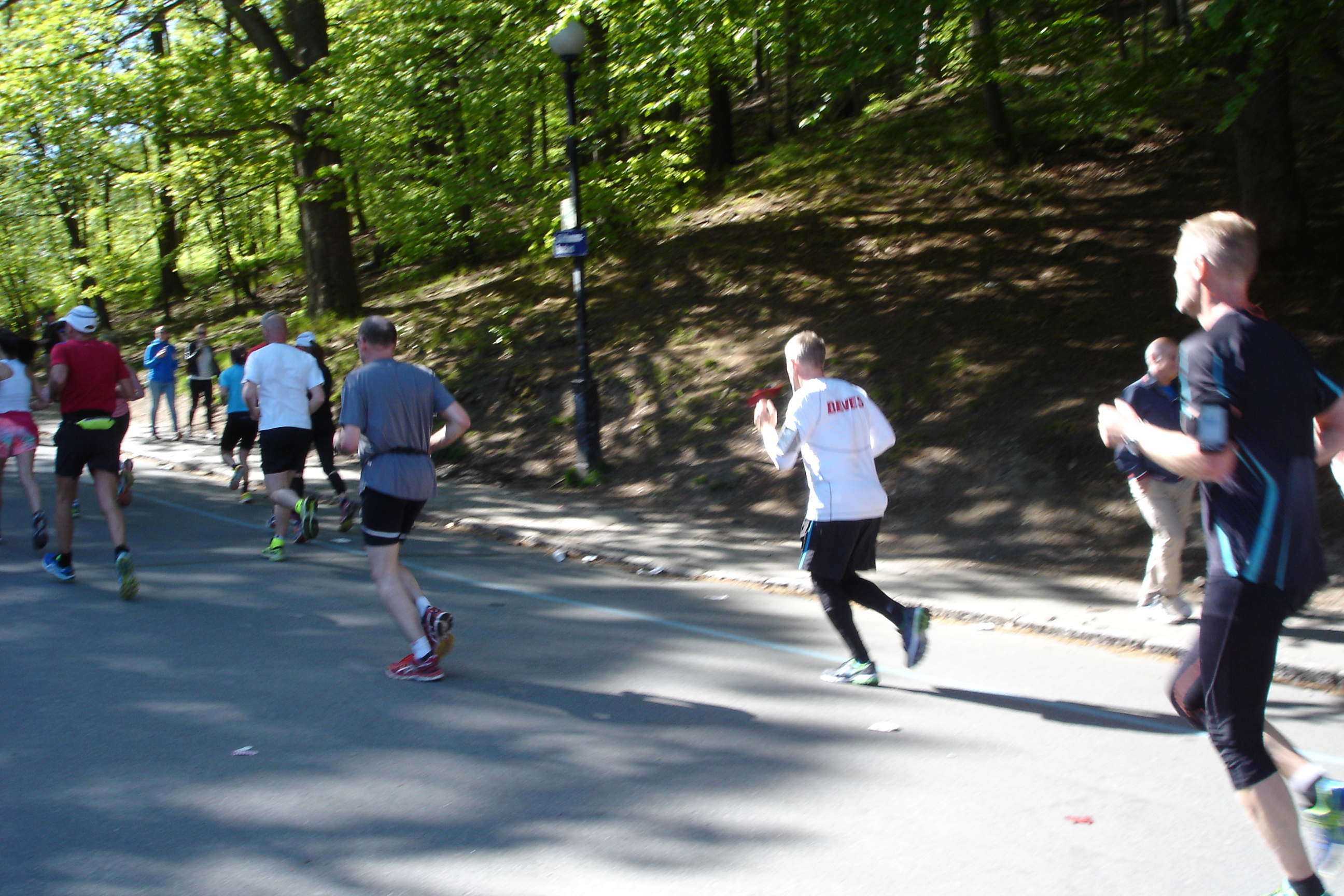 Der Start rückte immer näher und wir wurden mit Musik und Applaus auf die Strecke geschickt. Die ersten Kilometer führten durch den Park, der bis auf den letzten Platz besetzt war. Es herrschte richtige Volksfeststimmung und viele Göteborger nutzten den Tag, um im Park zu picknicken und die Läufer anzufeuern. Es gab schon einige Steigungen im Park, viele davon waren jedoch schön schattig und gut zu meistern.