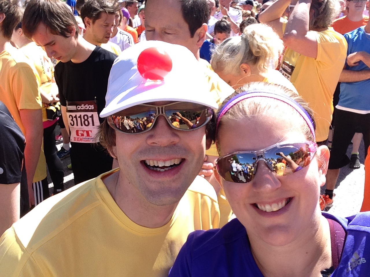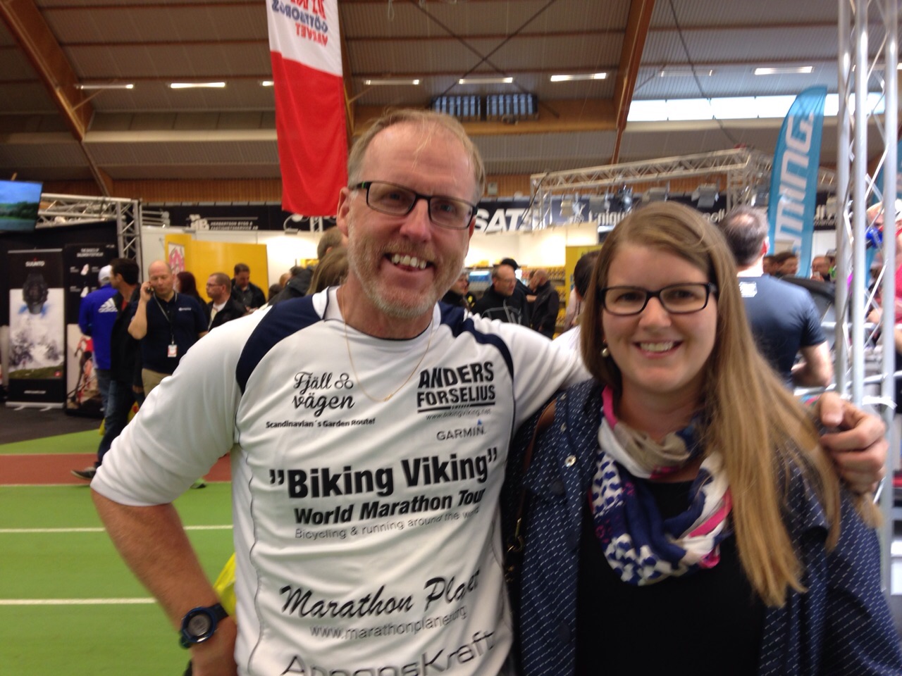Der Halbmarathon ist mit über 64’000 Anmeldungen und über 200’000 Zuschauern entlang der Strecke der grösste Halbmarathon der Welt. Deswegen haben wir uns schon am Donnerstag vor dem Lauf auf den Weg zur Expo gemacht, die in der Nähe des Stadions stattfand. Dort haben wir als erstes unsere Startnummern abgeholt und liefen danach durch die grosse Expo. Dort konnte man sich mit Rennverpflegung eindecken, die neusten Laufschuhe austesten und auch gleich kaufen (lohnt sich, die Preise waren sehr gut im Vergleich zur Schweiz), sich neue Laufbekleidung kaufen, verschiedene Wettbewerbe machen und auch das eine oder andere bekannte Gesicht antreffen. Ich habe letztes Jahr am Marathon in New York den Schweden Anders Forselius kennengelerent, der als „biking viking“ auf der ganzen Welt unterwegs ist und schon unzählige Marathons gelaufen ist. Und wisst ihr was? Er kennt sogar Aarau („You know, everybody knows Aarau!“).